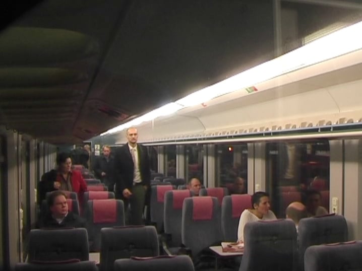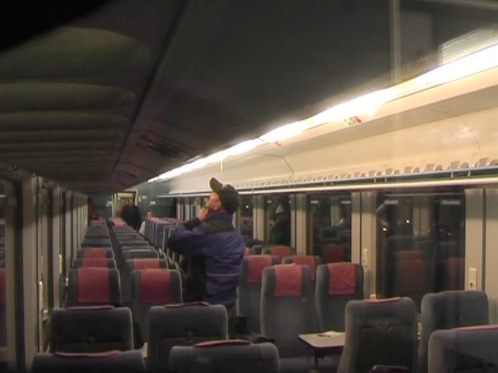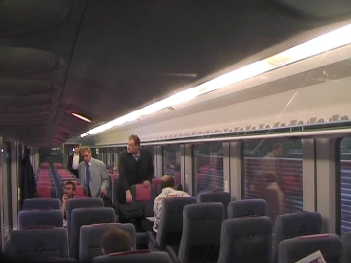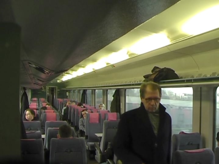 Over the course of one year a man was secretly filmed as he walked through a train every morning.